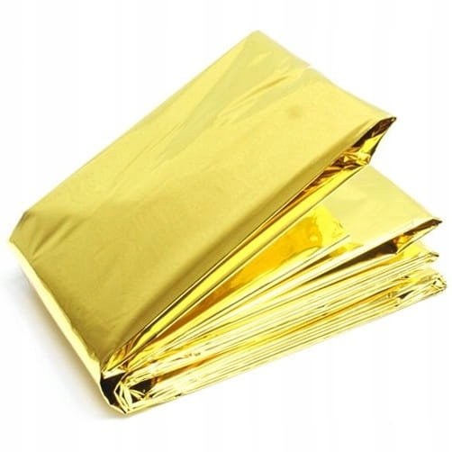 Ratunkowy koc termiczny wykonany z wysokiej jakości folii używanej w ratownictwie, turystyce, wspinaczce oraz sytuacjach awaryjnych lub warunkach ekstremalnych.