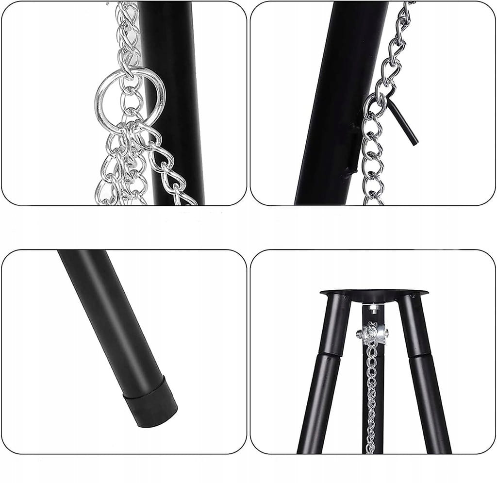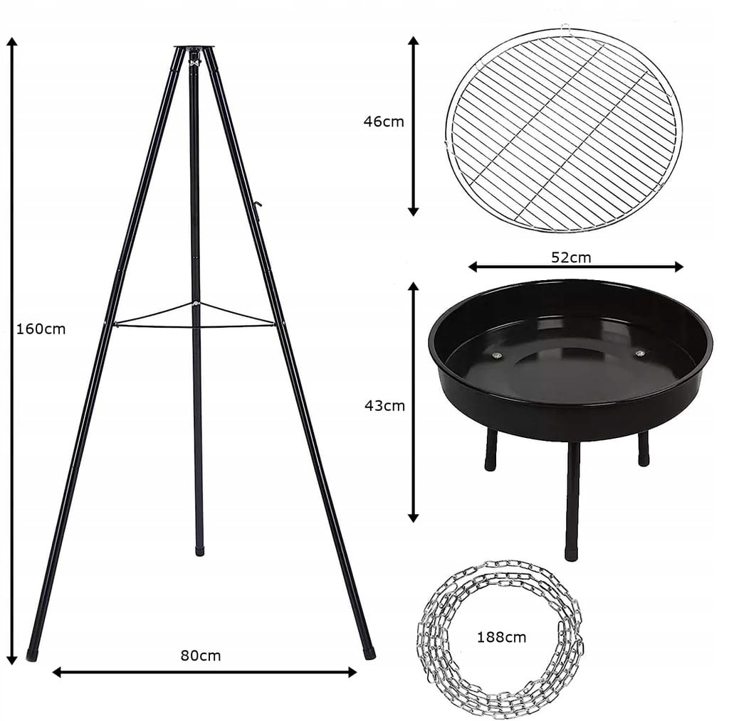 Konstrukcja na trójnogu umożliwia użycie grilla nad paleniskiem, dołączonym do zestawu lub bezpośrednio nad ogniskiem. Sam wybierasz odpowiedni dla siebie sposób użycia całego zestawu jednocześnie lub jego wybranych części.