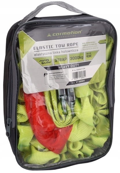 Mocna, wytrzymała linka holownicza, o długości 4m, zakończona hakami z zabezpieczeniem (sprężynowym) przed wypięciem. Wytrzymałość do 3000kg. Elastyczność sprawia, że linka po naprężeniu nie powoduje szarpnięć i wstrząsów.